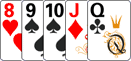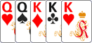 ![]() | Royal FlushThe strongest poker hand is the Royal Flush and it consists of ace, king, queen, jack and ten, all in the same suit. |