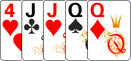 ![]() | Four of a kindFour of a kind is a combination of four cards of the same rank and another different card whose rank is not important. If in a game happens to be two fours of a kind, better is the one with the strongest set of four cards. |